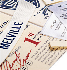Etichette tessute in taffetà, raso rasetto, alta definizione.