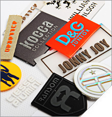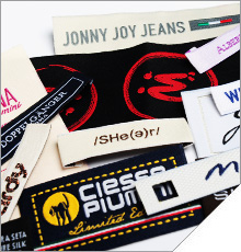 Etichette tessute con stampa sublimata. Etichette in lino, seta, cotone.
